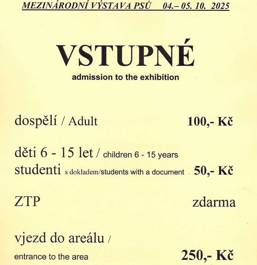 Při vstupu na výstaviště s vlastním psem je nutné doložit očkovací průkaz psa, který je u vchodu kontrolován veterinárním lékařem.